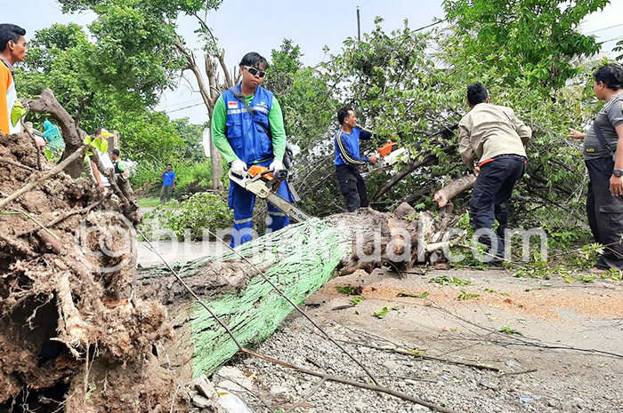 BUMIAKTUAL,SITUBONDO – Cuaca buruk di wilayah Situbondo akhir-akhir ini sering terjadi, seperti hujan deras dan terjangan angin kencang. Bahkan, sebuah pohon yang berukuran cukup besar di sebelah barat pasar tradisional Desa Sumberkolak, Kecamatan Panarukan pun tumbang, Rabu sore (19/02/2020).