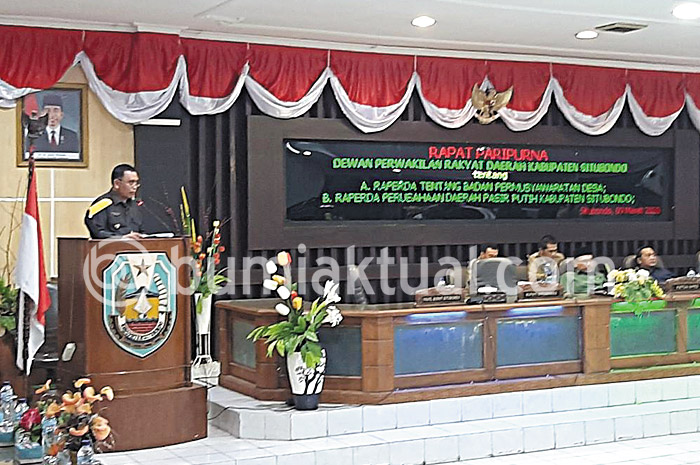 Pernyataan tersebut disampaikan melalui pandangan umum dalam pelaksanaan Paripurna pembahasan tiga raperda, Senin (09/03/2020). Salah satunya raperda tentang Badan Permusyawaratan Desa (BPD). Sebagian besar fraksi menginginkan agar jenjang pendidikan anggota BPD disamakan dengan perangkat desa. “BPD memiliki peran strategis dalam roda pemerintahan desa. Jadi minimal harus lulusan SMA juga,” ujar Wakil Ketua DPRD Situbondo, Abdurachman.