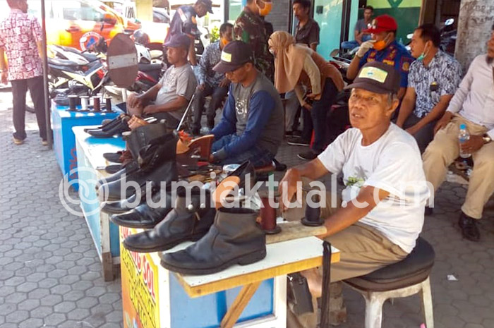 BUMIAKTUAL,SITUBONDO – Mewabahnya Virus Corona atau Covid-19 di Kabupaten Situbondo, tidak hanya berdampak buruk bagi para pedagang saja. Namun, sejumlah penyedia jasa tukang sol sepatu di Pasar Mimbaan Baru Situbondo, juga merasakan dampak negatifnya.