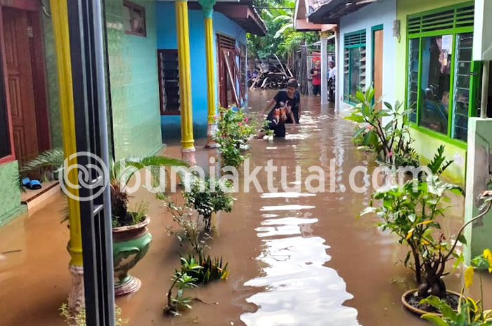 BUMIAKTUAL,SITUBONDO – Luapan air Sungai Jumain di Desa/Kecamatan Besuki menggenangi 50 rumah warga, Senin dini hari (06/04/2020). Ini setelah sebelumnya di daerah setempat dan sekitarnya diguyur hujan lebat sepanjang malam. Akibatnya, debit air sungai pun tak tertampung. Luapan air sungai masuk ke pemukiman rumah warga dengan ketinggian 30 – 40 cm.