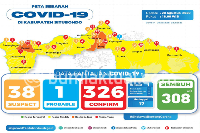 Sementara itu, data peta penyebaran Covid 19 di Kabupaten Situbondo, total ada 326 terkonfirmasi. Sedangkan 308 dinyatakan sembuh. Sedangkan 17 orang lagi meninggal dunia. “Mereka yang meninggal dunia, juga disertai dengan penyakit bawaan,” pungkas Dadang. (dra/usy)