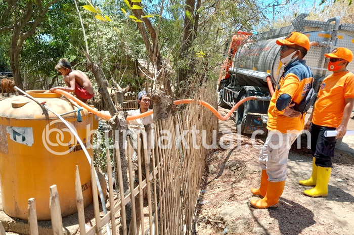 BUMIAKTUAL, SITUBONDO – Badan Penanggulangan Bencana Daerah (BPBD) Situbondo secara perdana mengirim air bersih pada tahun 2020, Kamis (01/10/2020). Dari dua lokasi, petugas telah menyuplai sepuluh ribu liter air.