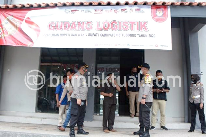 BUMIAKTUAL, SITUBONDO – Kapolres Situbondo, AKBP Imam Rifai meninjau gudang penyimpanan logistik, Rabu (11/11/2020). setelah barang-barang kebutuhan pemilihan umum tersebut telah datang, petugas kepolisian akan melakukan penjagaan ketat di sekitar lokasi.