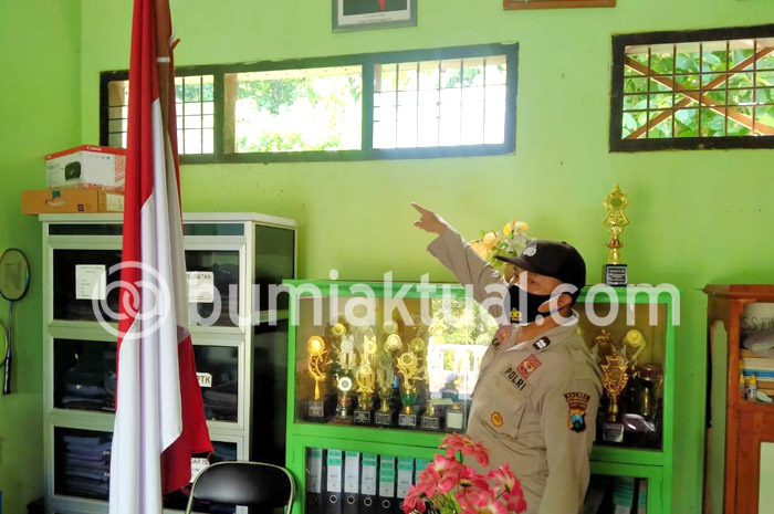 Kata dia, pelaku masuk ruangan kepala sekolah melewati jendela. Sebelumnya, pelaku juga membuka teralis besi dan memecahkan kaca. “Petugas juga menemukan tangga bambu di belakang ruang kasek tersebut,” jelas Kapolsek Kendit.