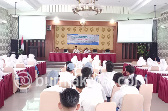 BUMIAKTUAL – Seksi Bimbingan Masyarakat (Bimas) Islam Kantor Kementrian Agama (Kemenag) Kabupaten Situbondo menggelar Bimbingan Remaja Usia Sekolah, Senin 20 Maret 2023. Kali ini bertempat di SMKN 1 Panji. Ratusan siswa diajak untuk memahami pentingnya mempersiapkan perkawinan demi masa depan keluarga yang berkualitas.