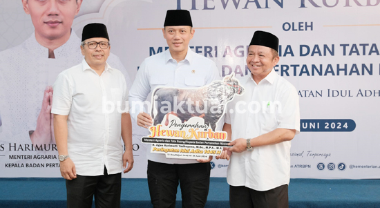 Menteri Agraria dan Tata Ruang/Kepala Badan Pertanahan Nasional (ATR/BPN), Agus Harimurti Yudhoyono (AHY) menyerahkan hewan kurban para pegawai Kementerian ATR/BPN kepada Dewan Kemakmuran Masjid Nuurur Rahman. Total hewan yang diserahkan, yakni 61 sapi dan 11 kambing kurban. Prosesi penyerahan hewan kurban dilakukan pada hari pertama kerja pasca Hari Raya Iduladha, Rabu (19/06/2024).