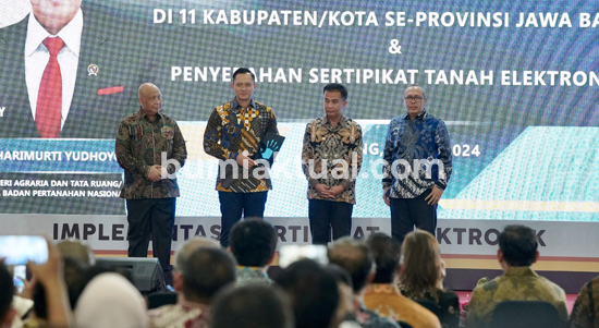BANDUNG – Usai meluncurkan Implementasi Layanan Elektronik di Bali dan Banten pada Mei lalu, Menteri Agraria dan Tata Ruang/Kepala Badan Pertanahan Nasional (ATR/BPN), Agus Harimurti Yudhoyono (AHY) kali ini meluncurkan Implementasi Layanan Elektronik di 11 Kantor Pertanahan (Kantah) Kabupaten/Kota se-Provinsi Jawa Barat secara serentak. Kegiatan ini berlangsung di Gedung Sate, Bandung pada Minggu (09/06/2024).