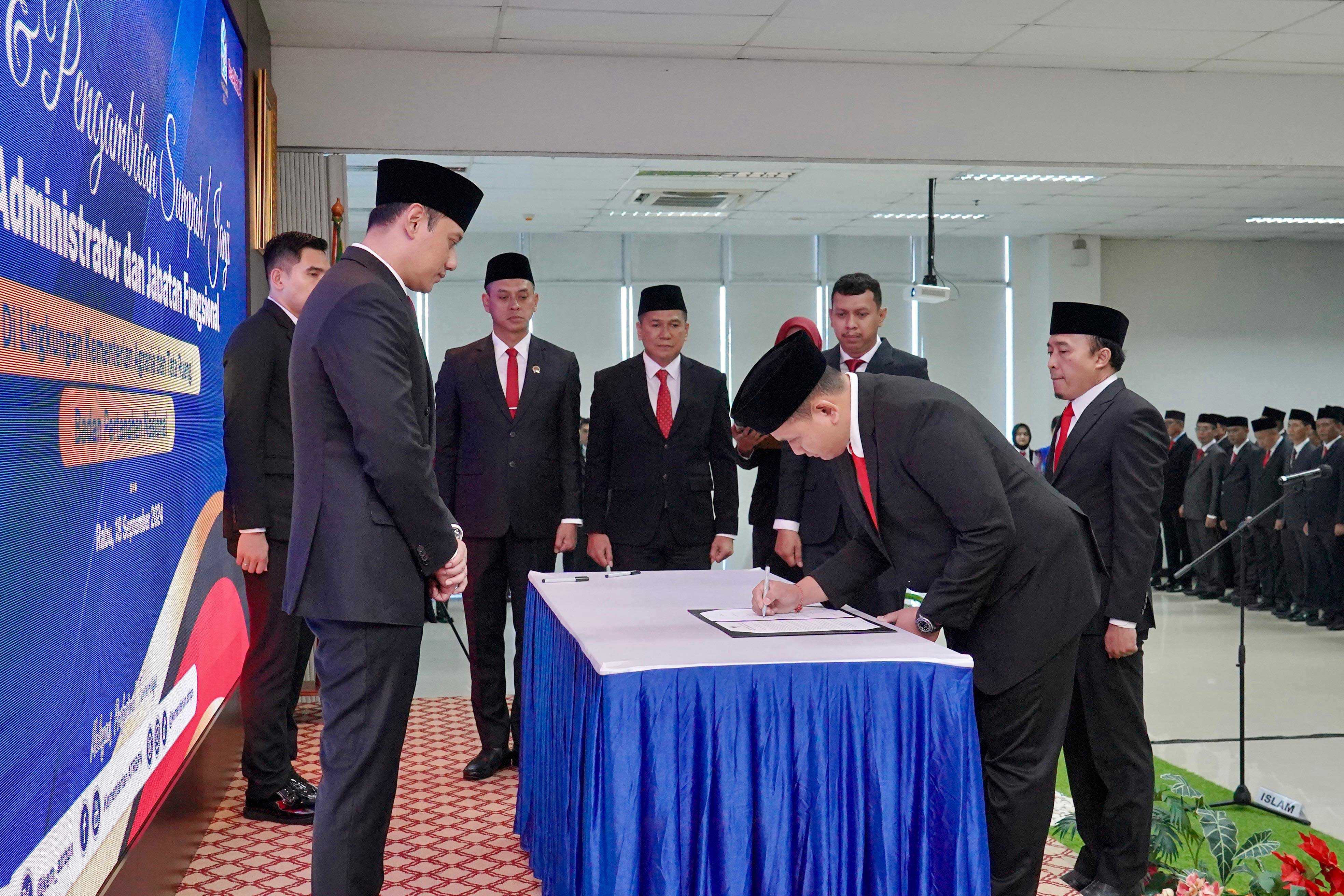 Cikeas – Menteri Agraria dan Tata Ruang/Kepala Badan Pertanahan Nasional (ATR/BPN), Agus Harimurti Yudhoyono (AHY) melantik 327 pegawai yang terdiri dari 310 Pejabat Administrator dan 17 Pejabat Fungsional pada Rabu (18/09/2024). Ia berharap, para pejabat terlantik akan siap mengabdi untuk bangsa Indonesia.
