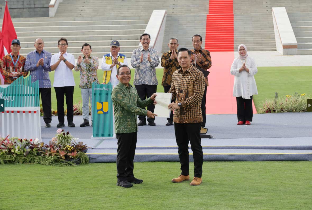 Disaksikan Presiden Jokowi, Menteri AHY Serahkan Sertipikat Tanah Elektronik Hak Pakai untuk Istana Negara dan Istana Garuda di IKN