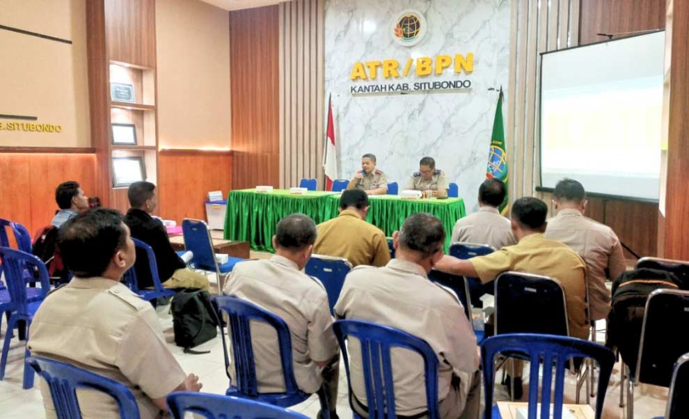 BUMIAKTUAL, SITUBONDO- Kantor Pertanahan Kabupaten Situbondo melakukan Kegiatan rapat koordinasi bersama calon desa peserta program Pendaftaran Tanah Sistematis Lengkap (PTSL) tahun 2025, Selasa (29/10). Kegiatan yang dilaksanakan di Aula Kantor Pertanahan Kabupaten Situbondoitu dipimpin langsung oleh Kepala Kantor Pertanahan Bapak Fisko, S.Si., M.E dan dihadiri oleh perwakilan dari calon desa peserta PTSL tahun 2025. (tim)