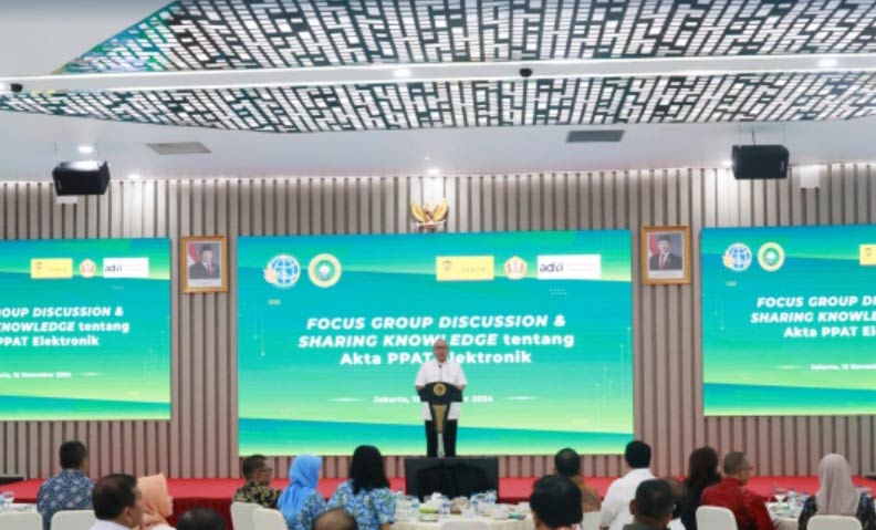 BUMIAKTUAL, JAKARTA – Kementerian Agraria dan Tata Ruang/Badan Pertanahan Nasional (ATR/BPN) terus berkomitmen mempercepat proses digitalisasi, salah satunya dengan penerapan Akta Tanah Elektronik. Hal tersebut disampaikan Sekretaris Jenderal Kementerian ATR/BPN, Suyus Windayana dalam Focus Group Discussion (FGD) dan Sharing Knowledge bersama Ikatan Pejabat Pembuat Akta Tanah (IPPAT), Selasa (12/11/2024).