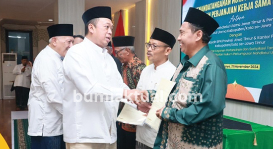 Sebelum penyerahan sertipikat tanah wakaf ini, Menteri Nusron menyaksikan penandatanganan Nota Kesepahaman/MoU antara Kantor Wilayah BPN dengan PWNU Jawa Timur serta Perjanjian Kerja Sama (PKS) antara Kantor Pertanahan dengan Pengurus Cabang Nahdlatul Ulama (PCNU) se-Provinsi Jawa Timur. Kerja sama yang dilakukan terkait dengan Percepatan Layanan Pertanahan dan Sertipikasi Tanah Milik dan Tanah Wakaf Badan Hukum Perkumpulan NU.