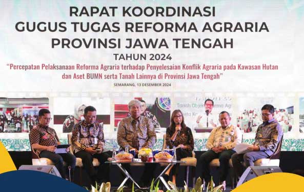 BUMIAKTUAL, SEMARANG – Sinergi dan kolaborasi antar pemangku kepentingan dalam forum Gugus Tugas Reforma Agraria (GTRA) di daerah, menjadi kunci sukses pelaksanaan Reforma Agraria. Hal ini disampaikan oleh Direktur Jenderal Penataan Agraria (Dirjen Pentag), Yulia Jaya Nirmawati saat menjadi panelis pada Rapat Koordinasi GTRA Provinsi Jawa Tengah di PO Hotel Semarang, Jumat (13/12/2024).