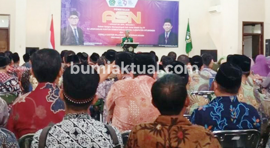 BUMIAKTUAL, SITUBONDO – Sejumlah pesan penting disampaikan oleh Kepala Kantor Wilayah (Kakanwil) Kementerian Agama (Kemenag) Jawa Timur, Dr. Ahmad Sruji Bahtiar, MPdi saat melakukan pembinaan kepada aparatur sipil negara (ASN) yang ada di lingkungan Kemenag Kabupaten Situbondo, Jumat 10 Januari 2024.