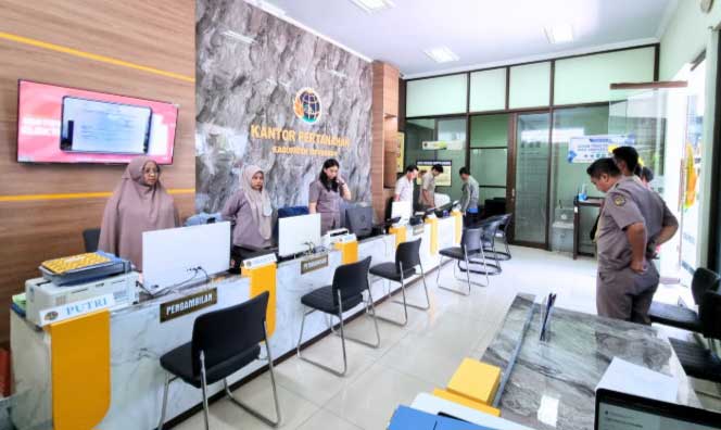 BUMIAKTUAL, SITUBONDO-Seluruh jajaran pegawai dan pengguna layanan Kantor Pertanahan Kabupaten Situbondo mendengarkan Lagu Kebangsaan Indonesia Raya dalam posisi berdiri tegak dengan sikap sempurna, Senin (7/7).