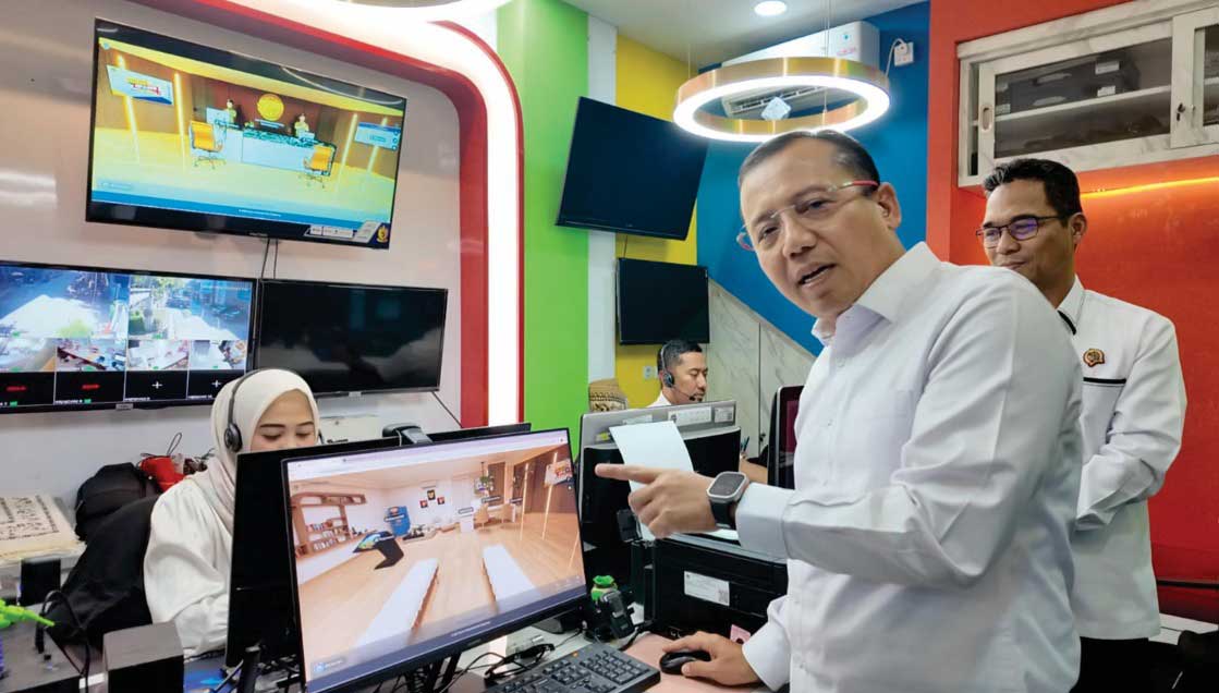 BUMIAKTUAL, TANGERANG – Staf Ahli Bidang Teknologi Informasi Kementerian Agraria dan Tata Ruang/Badan Pertanahan Nasional (ATR/BPN), Dwi Budi Martono, meninjau salah satu inovasi dalam pelayanan pertanahan, yaitu Kantor Pertanahan Virtual. Layanan ini dihadirkan oleh Kantor Pertanahan (Kantah) Kota Tangerang dan langsung diapresiasi karena dinilai berhasil menghadirkan layanan virtual secara lengkap dan mudah diakses masyarakat.