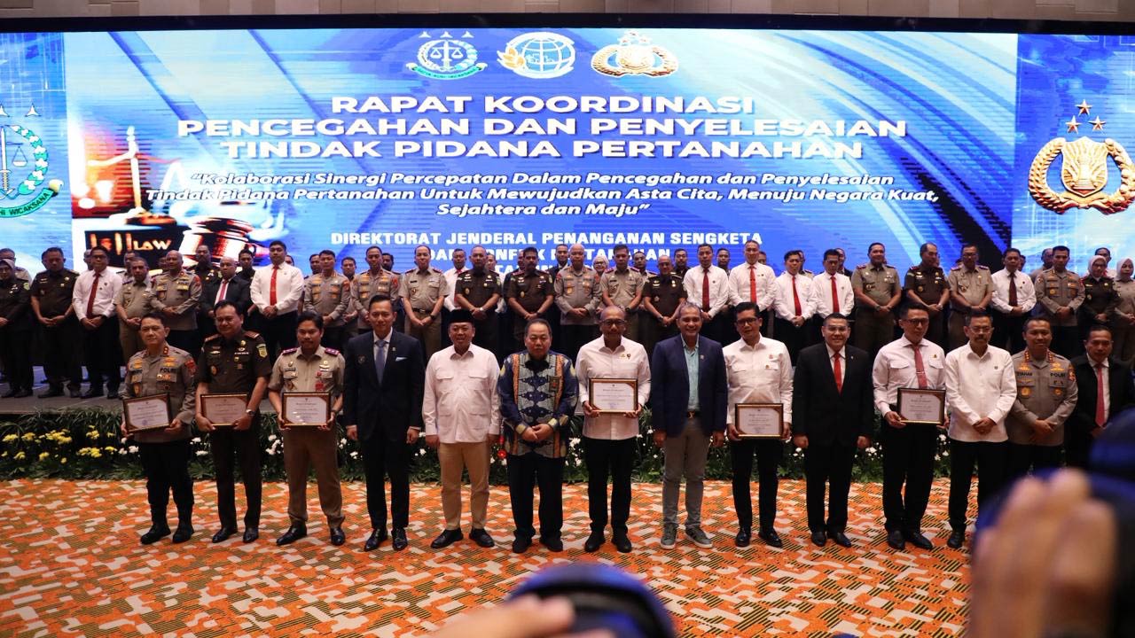 Kepada peserta Rakor yang tergabung dalam Tim Satuan Tugas Pencegahan dan Penyelesaian Tindak Pidana Pertanahan, Menteri Nusron menyampaikan apresiasi kepada seluruh APH atas kerja keras dan sinergi yang terjalin sepanjang tahun. “Kami berterima kasih Bapak/Ibu yang ada di APH. Moga-moga kolaborasi ini bisa berlangsung dengan seksama,” ujarnya.