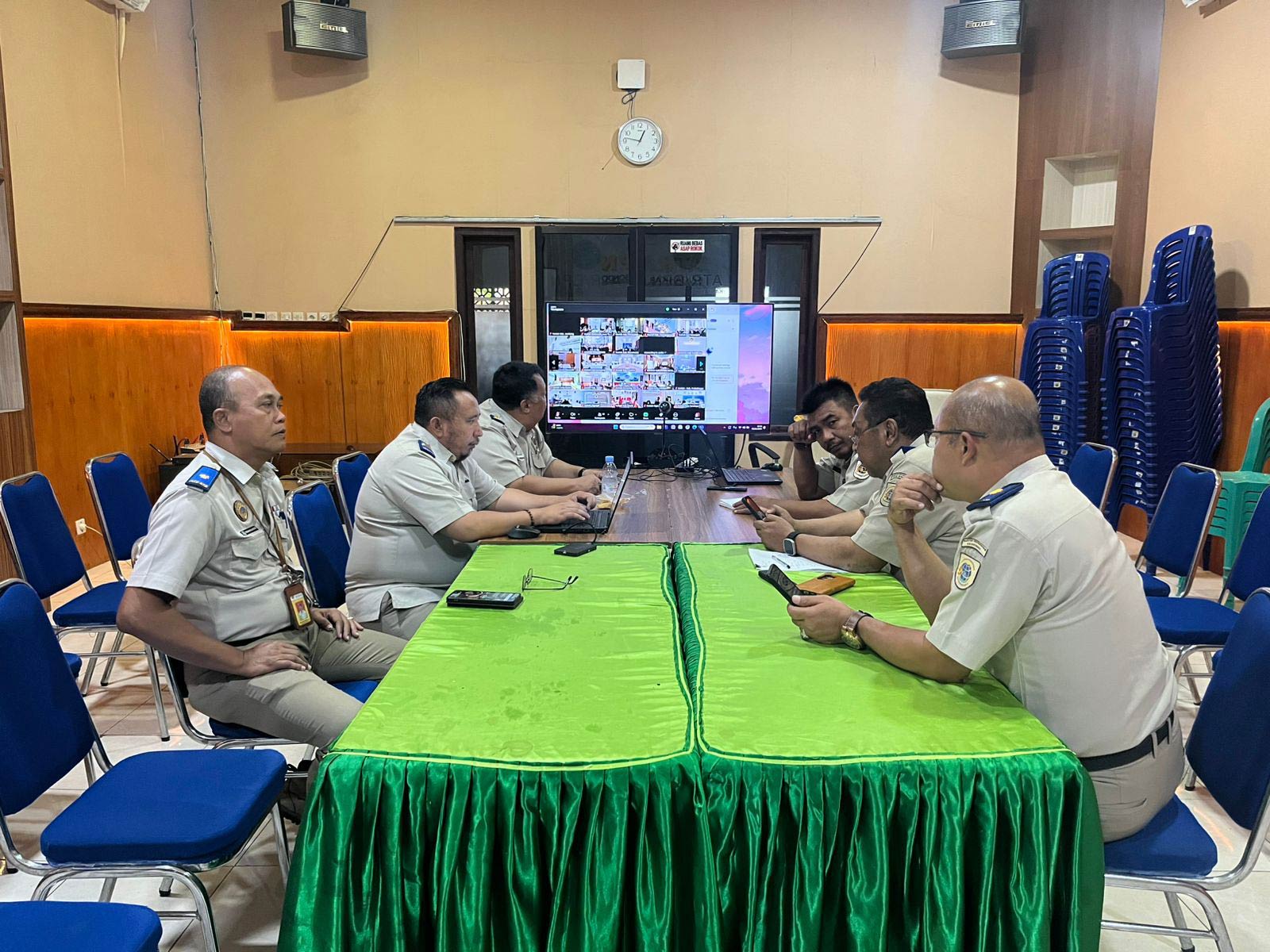 BUMIAKTUAL, SITUBONDO-Kepala Kantor Pertanahan Kabupaten Situbondo beserta Pejabat Pengawas dan Koorsub mengikuti kegiatan rapat secara daring (zoom) di Aula Kantor Pertanahan Kabupaten Situbondo, Senin (5/1/2026).